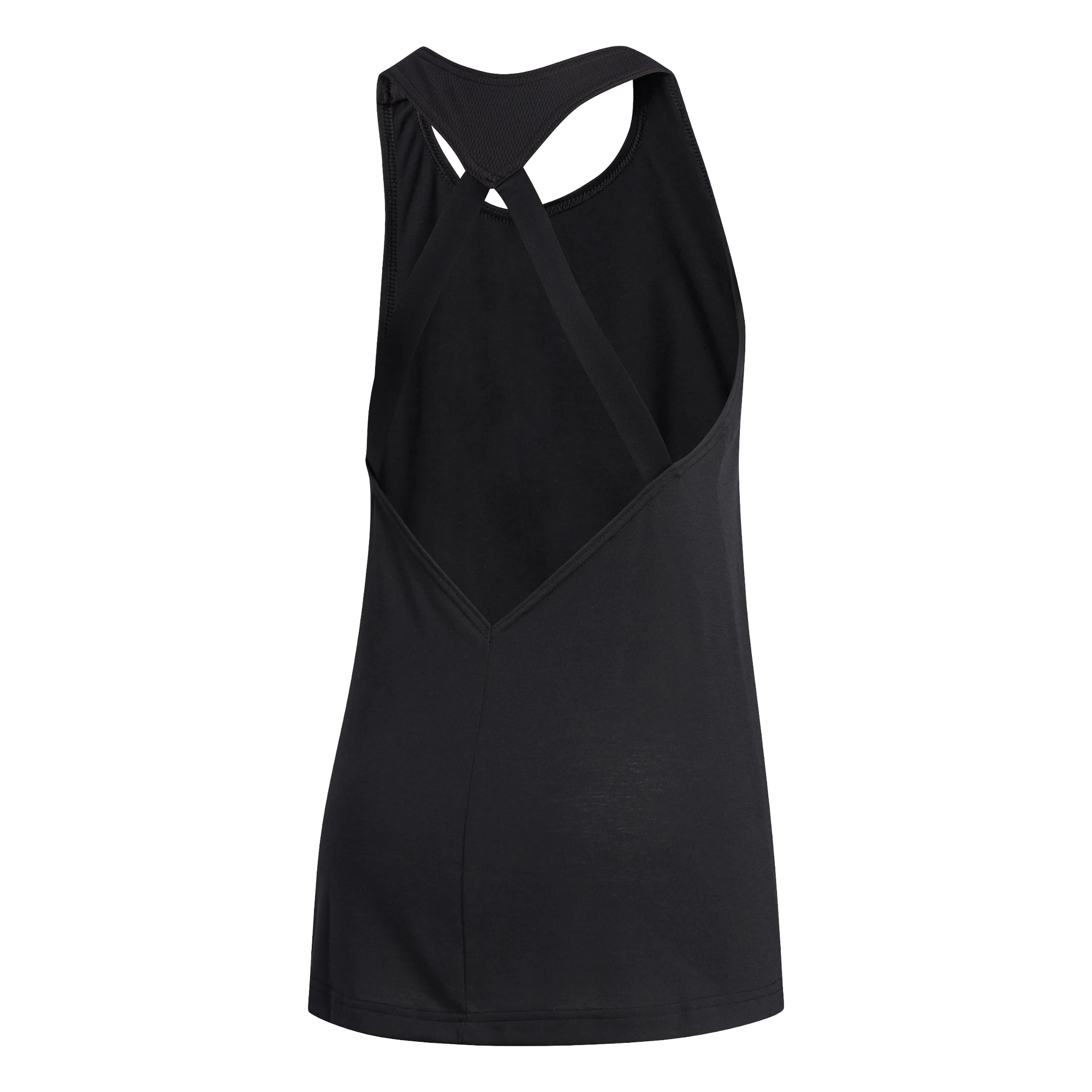 Because you can’t always work out right in front of the fan. This adidas training t-shirt has a mesh overlay on the back and mesh insert on the collar to keep air circulating. Lightweight jersey keeps you feeling dry. An elastic hem and back cutout add feminine details.