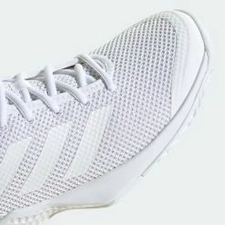 Shift your game up a gear. The lightweight mesh upper on these adidas tennis shoes is designed to keep you one step ahead of your opponents. A textured heel counter locks you in for every sprint, while the EVA midsole helps cushion landings. Underneath, a grippy Adiwear outsole keeps you in control on hard courts. Made with a series of recycled materials, this upper features at least 50% recycled content. This product represents just one of our solutions to help end plastic waste.
