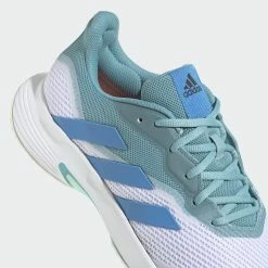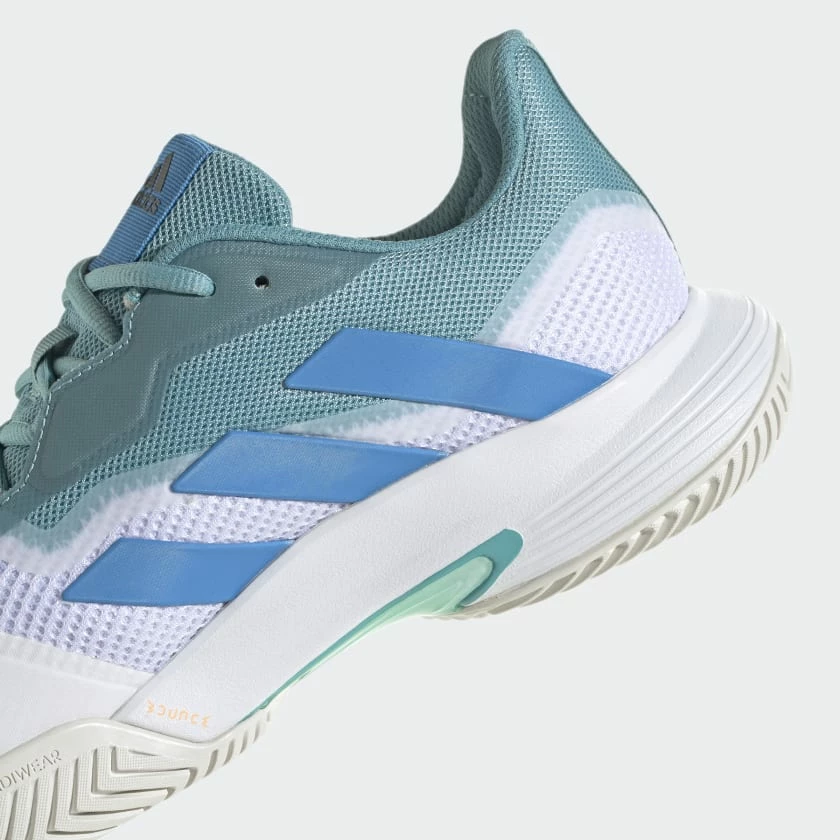 Don’t just compete. Dominate. The mesh upper and flexible Bounce midsole on these adidas Courtjam Control Tennis Shoes team up to keep you comfortable as you build pressure on your opponent. Underneath, a TPU midfoot shank and grippy Adiwear hard court outsole ensure you’re stable through every slide and sidestep. On the medial side, a combination of hidden lacing and abrasion zones specifically configured for the men’s game help these shoes tough out every challenge.