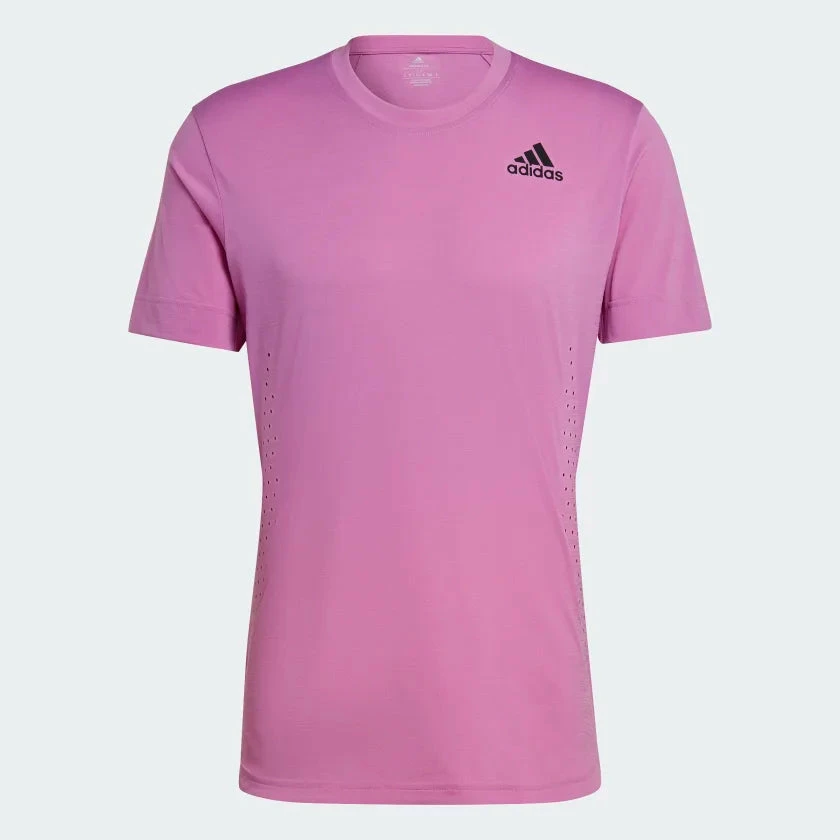 Part of an uplifting collection on show at North America’s biggest tennis tournament. This adidas t-shirt supports overhead play with a FreeLift design that gives you room in the shoulders for smashes and helps stop the back hem from riding up when you land. In the air or on the deck, mesh inserts and moisture-absorbing AEROREADY ensure you take on every challenge in complete comfort. This tee is made with natural and renewable materials as part of our journey to design out finite resources and help end plastic waste.
