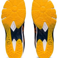 The GEL-BLADE™ 7 shoe’s standard width accommodates a wide range of foot sizes, while the removable sockliner can be replaced with orthotics for those requiring further arch support. The AHARPLUS™ outsole is all about protection, lending a hard wearing quality to the design and minimising scuffs as you slide across the court.