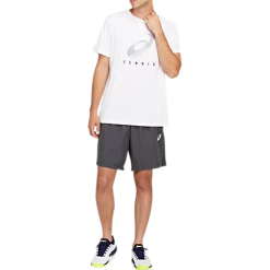 The PRACTICE M SPIRAL TEE features a slim tailored fit that’s appropriate for warming up on the tennis courts. This tee is contrasted with an ASICS® spiral logo on the front, while the phrase ‘tennis’ is spelled out underneath.