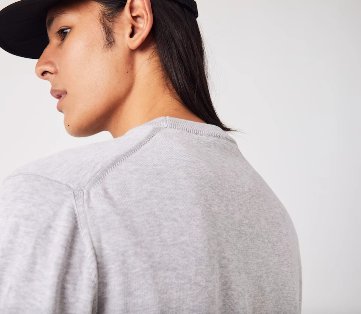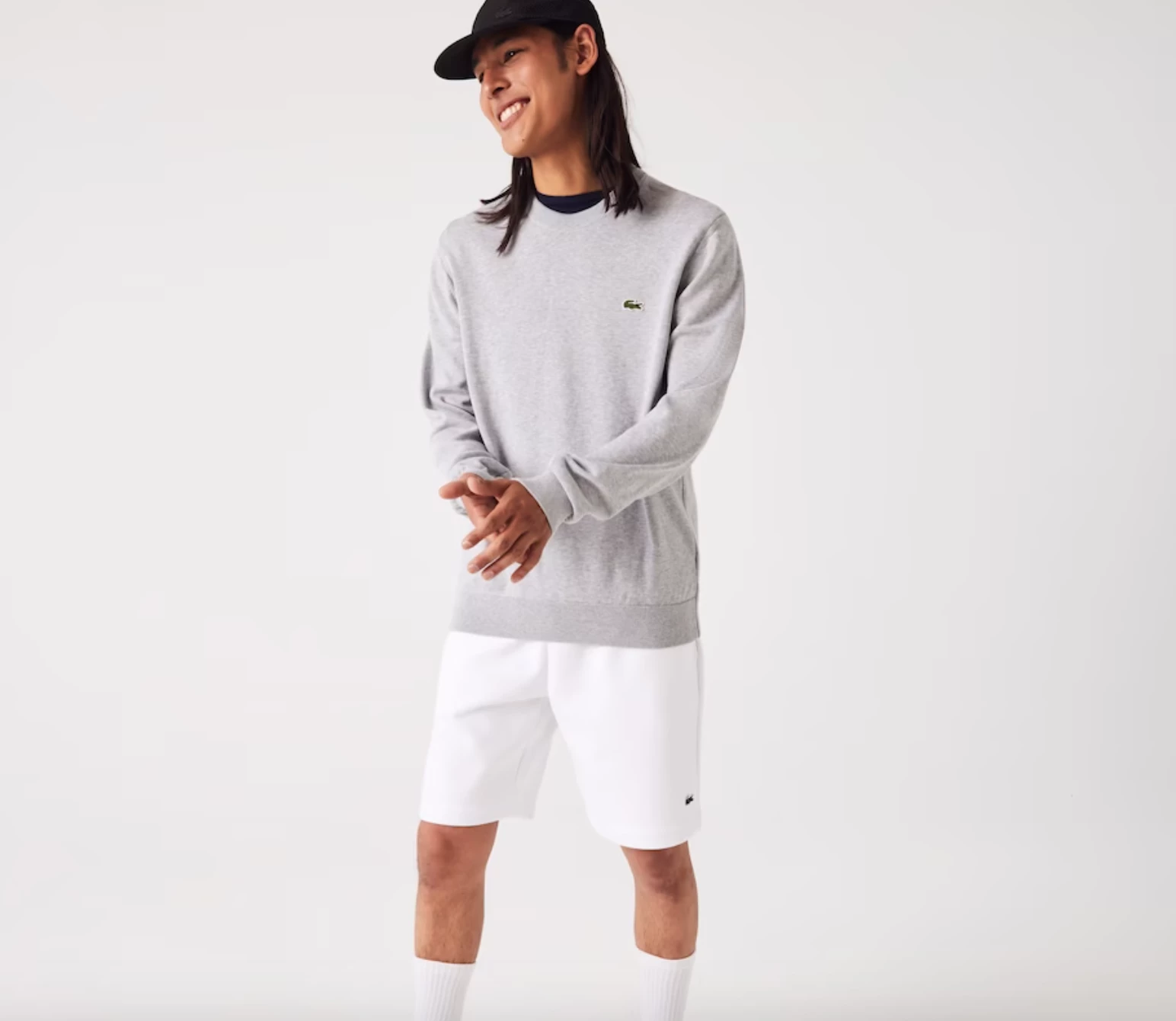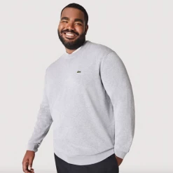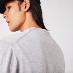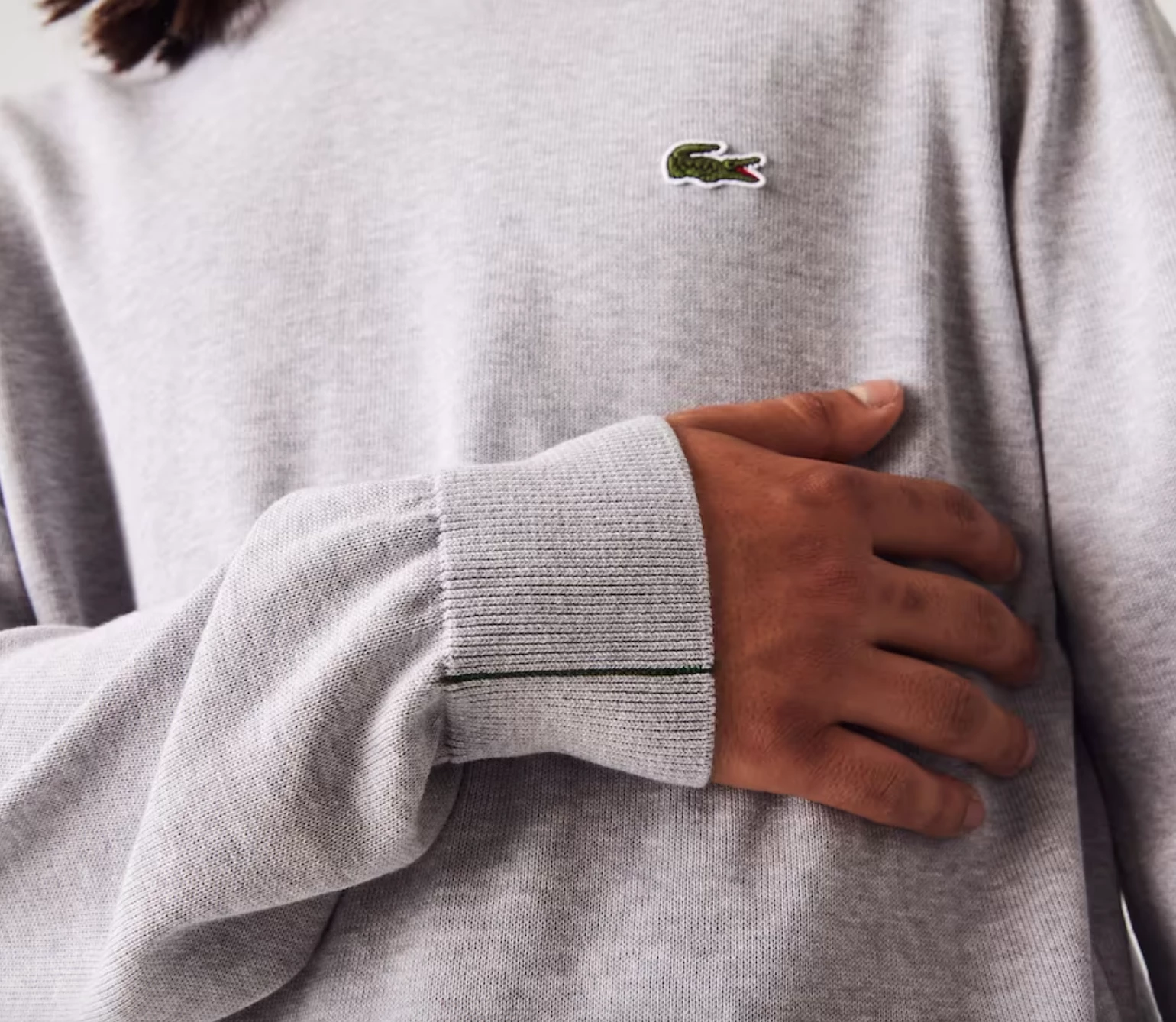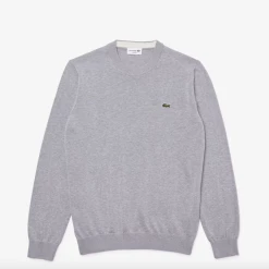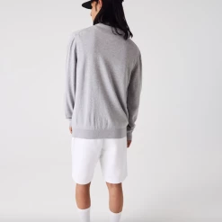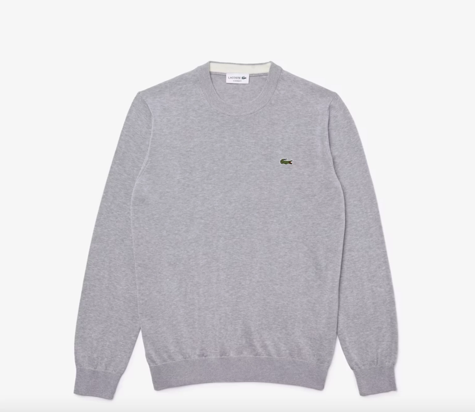 Complete your classic seasonal wardrobe with this crew neck sweater. This eco-responsible organic cotton jersey piece features contrasting details and ribbed finishes, as well as an iconic small green embroidered crocodile on the chest. For a warm and stylish cozy look, wear it with rolled-up chino pants and sneakers from the collection.