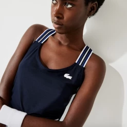 You’ll enjoy full freedom of movement with the second-skin effect of this Lacoste Sport tank top. Made of quick-dry stretch jersey, it goes with the flow, never holding you back. Topped with striped elasticized straps, this new essential offers irritation-free comfort.