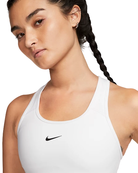 The Nike Dri-FIT Swoosh Sports Bra features our removable 1-piece pad designed to load easily from the top and keep a smooth and consistent shape, even after washing. A top-loading pocket holds all your essentials, while classic coverage provides medium-impact support for activities like spin, cardio and dance classes. This product is made from at least 50% recycled polyester fabric.