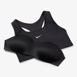 The Nike Dri-FIT Swoosh Sports Bra features our removable 1-piece pad designed to load easily from the top and keep a smooth and consistent shape, even after washing. A top-loading pocket holds all your essentials, while classic coverage provides medium-impact support for activities like spin, cardio and dance classes. This product is made from at least 50% recycled polyester fabric.