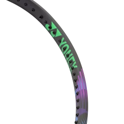 Compared to a conventional round frame, a square-shaped ISOMETRIC™ racquet generates a larger sweet spot by optimizing the intersection of the main and cross strings.
